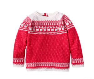 Ornated christmas red child’s sweater isolated,winter knitted kids clothes.