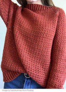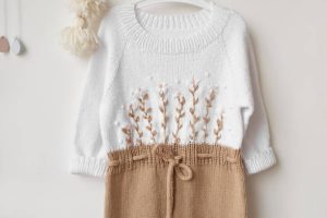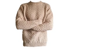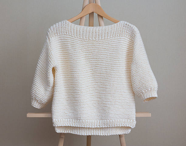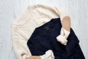 Two warm knitted sweaters on a wooden background. Fashionable concept